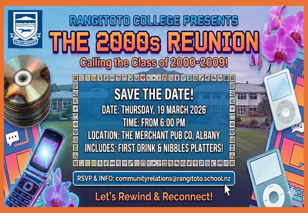Whether it’s been years since you were last at Rangi or you’ve stayed close with your cohort, we would love to see you there to celebrate your time at Rangitoto College.